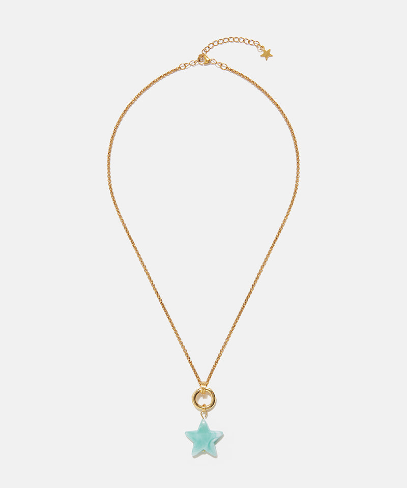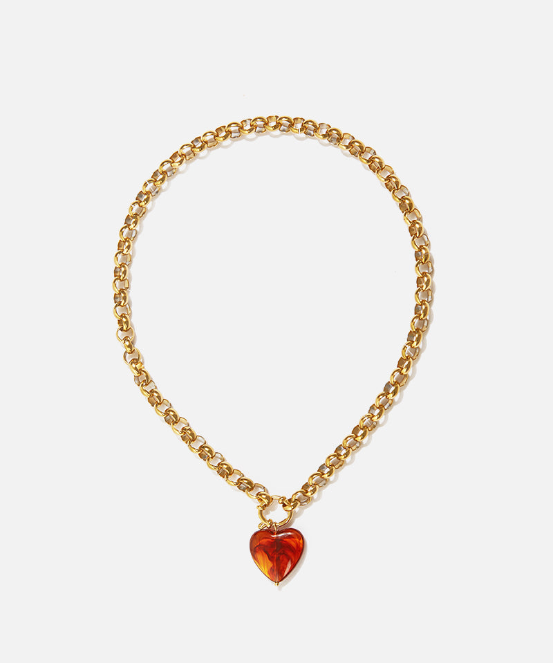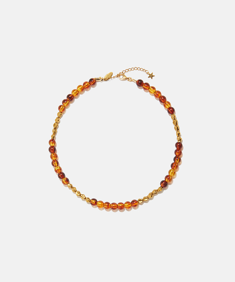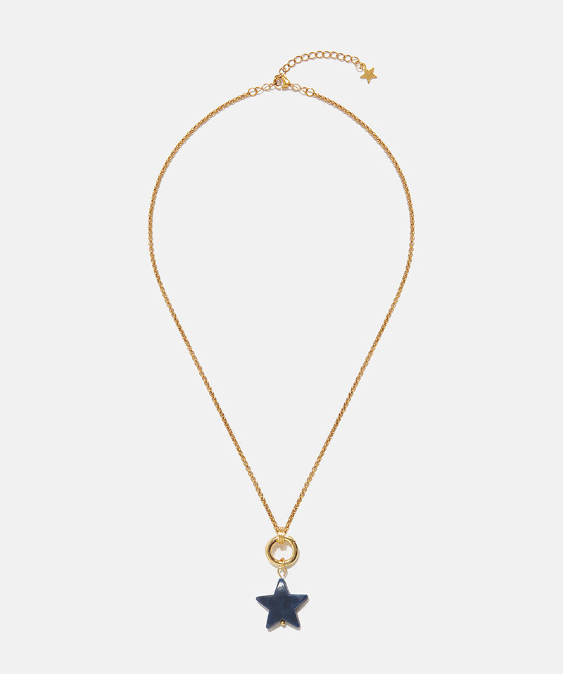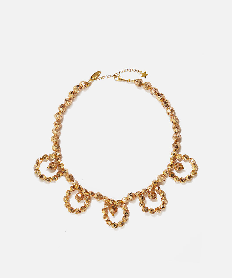 Compuesta por cinco piezas de líneas escultóricas en base de laton con baño de oro, la colección incorpora cabujones en tonos azul y teja que evocan la dimensión protectora y personal de la joya.