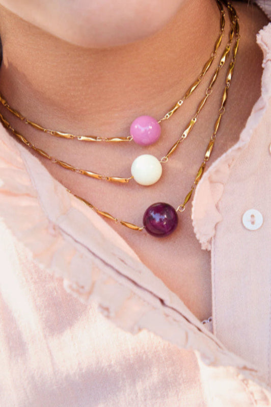 Cadena de acero inóxidable con bolita de resina.