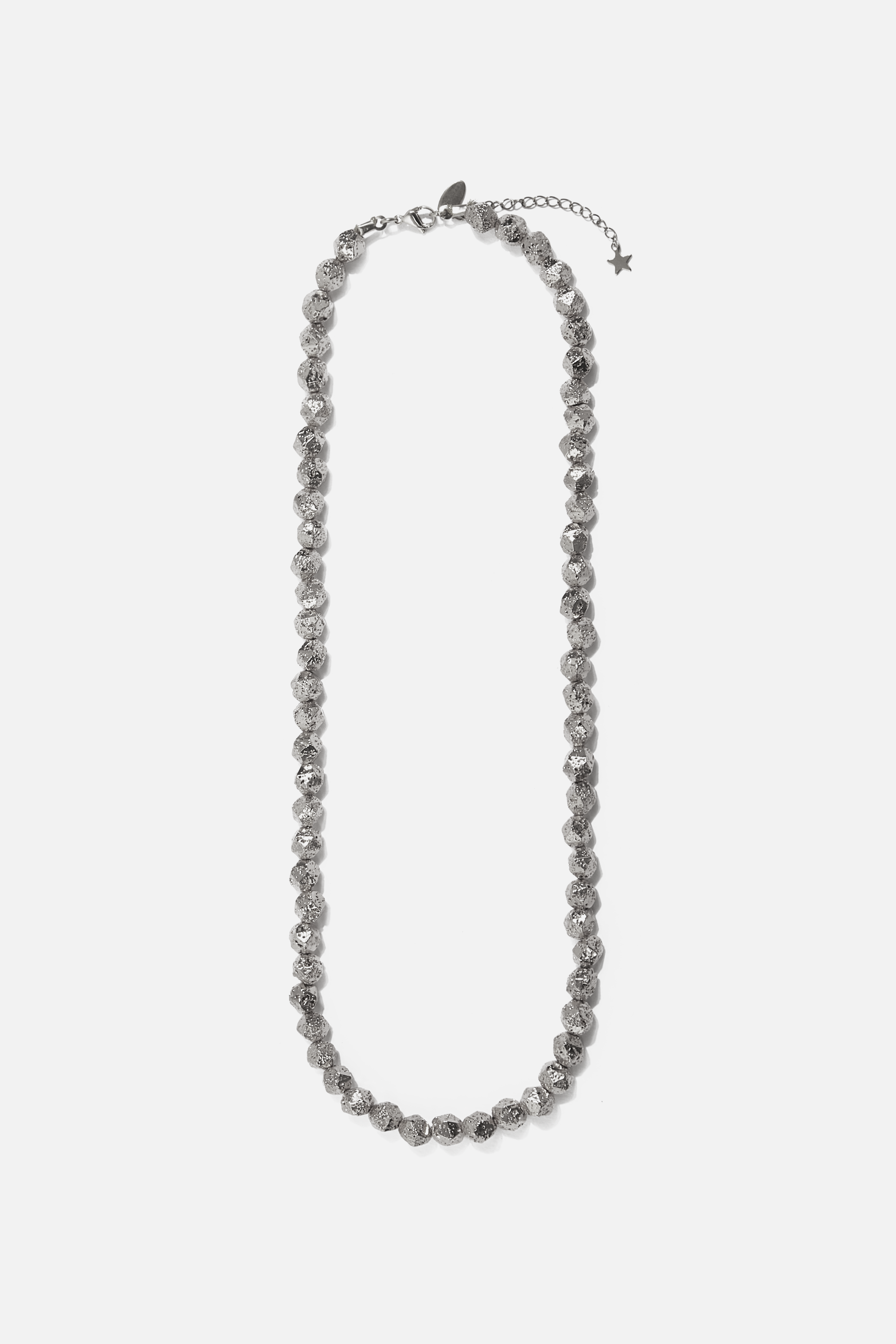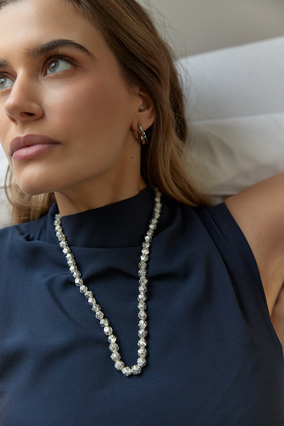 Collar de piedras en plateado brillante.