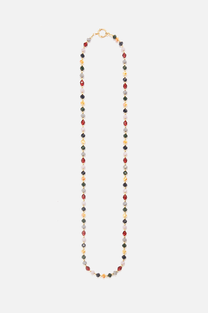 Collar de piedras de cristal en tonos otoñales y bolitas y cierre de acero inoxidable.