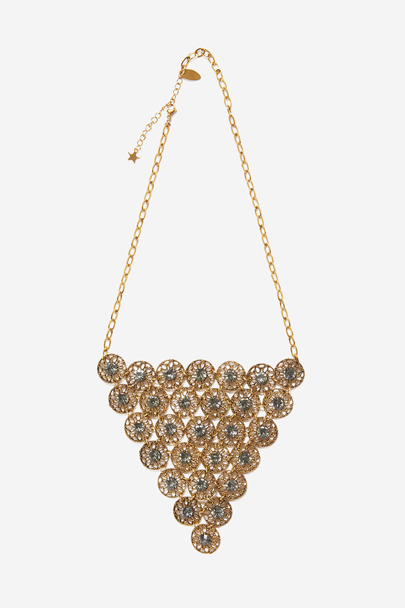 Collar de pequeñas piezas de acero inoxidable con piedra negra en forma de pico.