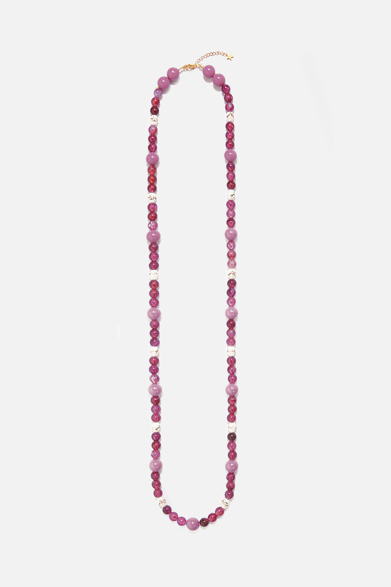 Collar largo de bolas de resina y pequeñas piezas de cerámica.