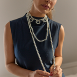Pieza llamativa pero equilibrada, perfecta para aportar luz y protagonismo al escote.