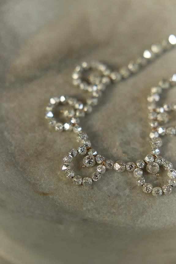 - Incorpora una serie de motivos en forma de gota o lágrima, creados con las mismas cuentas.