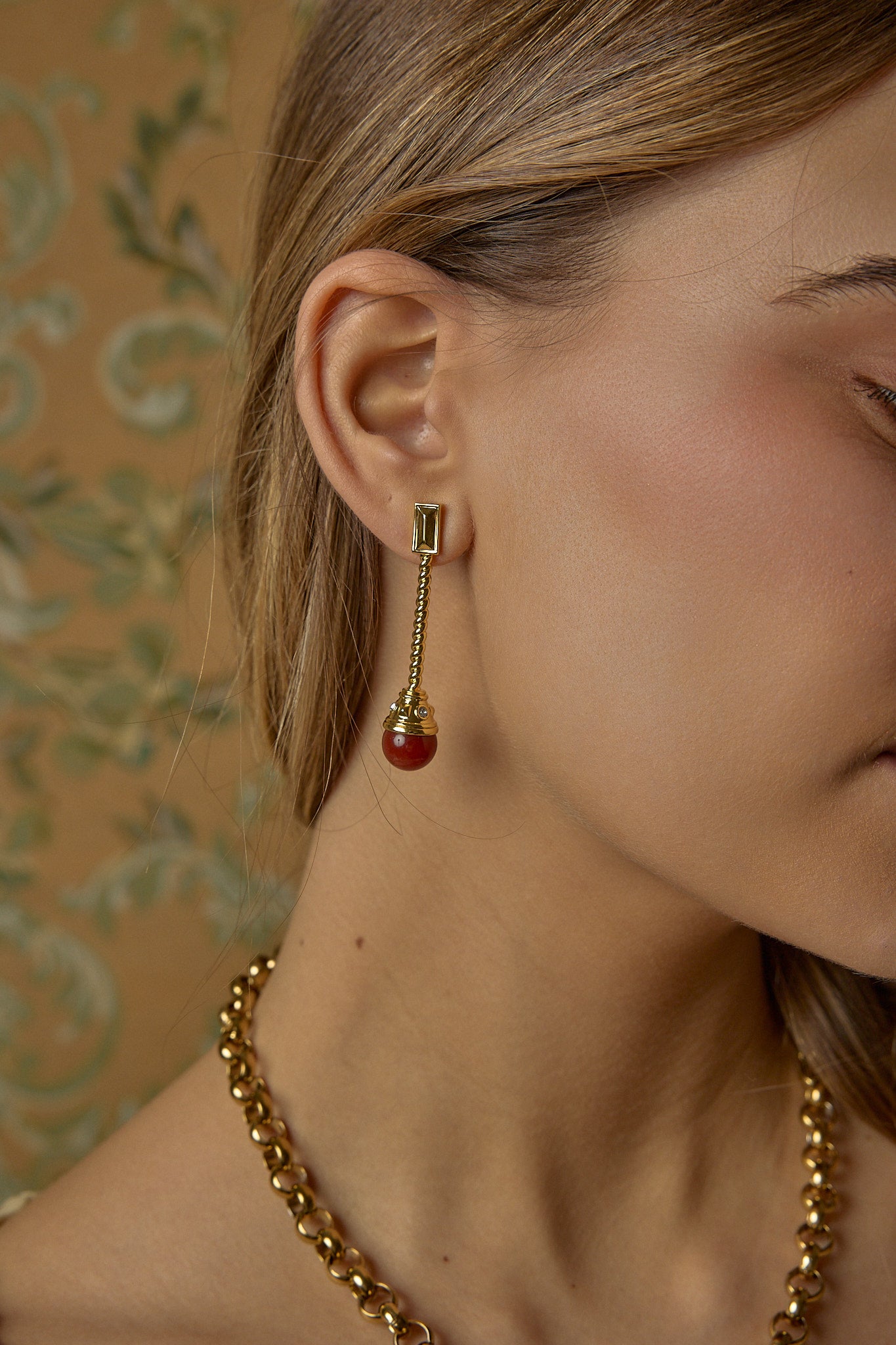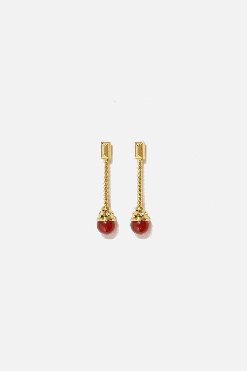 Pendientes largos con cabujones de piedra color teja.